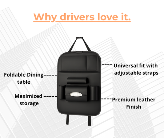 Premium Leather Car Seat Organizer with Foldable Table & Multi-Pocket Storage